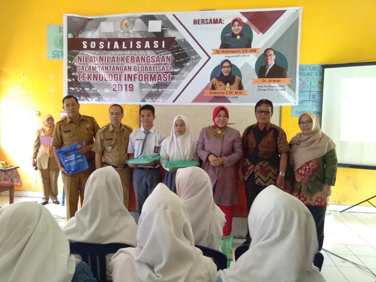 Anggota DPD RI, Hj Asmawati SE MM menjelaskan, adanya Nilai – nilai Kebangsaan yang harus ditanamkan kepada para siswa agar terhindari dari serangan dunia luar dizaman kemajuan teknologi saat ini.