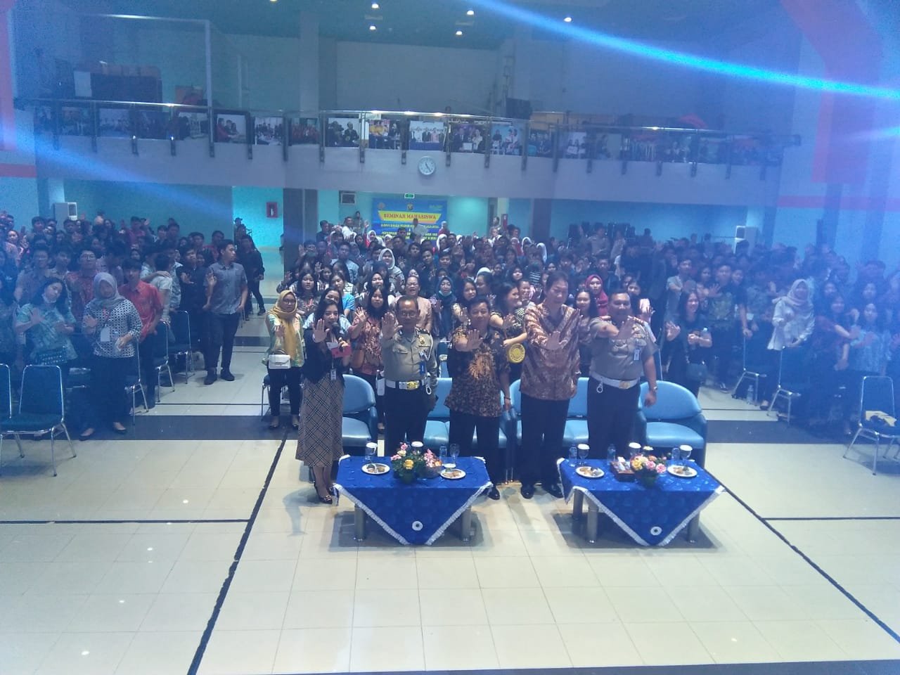 Palembang, lamanqu.com – Ratusan mahasiswa dari berbagai Universitas di kota Palembang mengikuti kegiatan ‘Police Goes To Campus‘ yang berlangsung di Aula kampus MDP Jalan Rajawali Palembang. Acara yang digelar oleh Ditlantas Polda Sumsel ini mengajak seluruh mahasiswa untuk menjadikan keselamatan sebagai hal pertama dan utama dalam berlalu lintas di jalan raya.