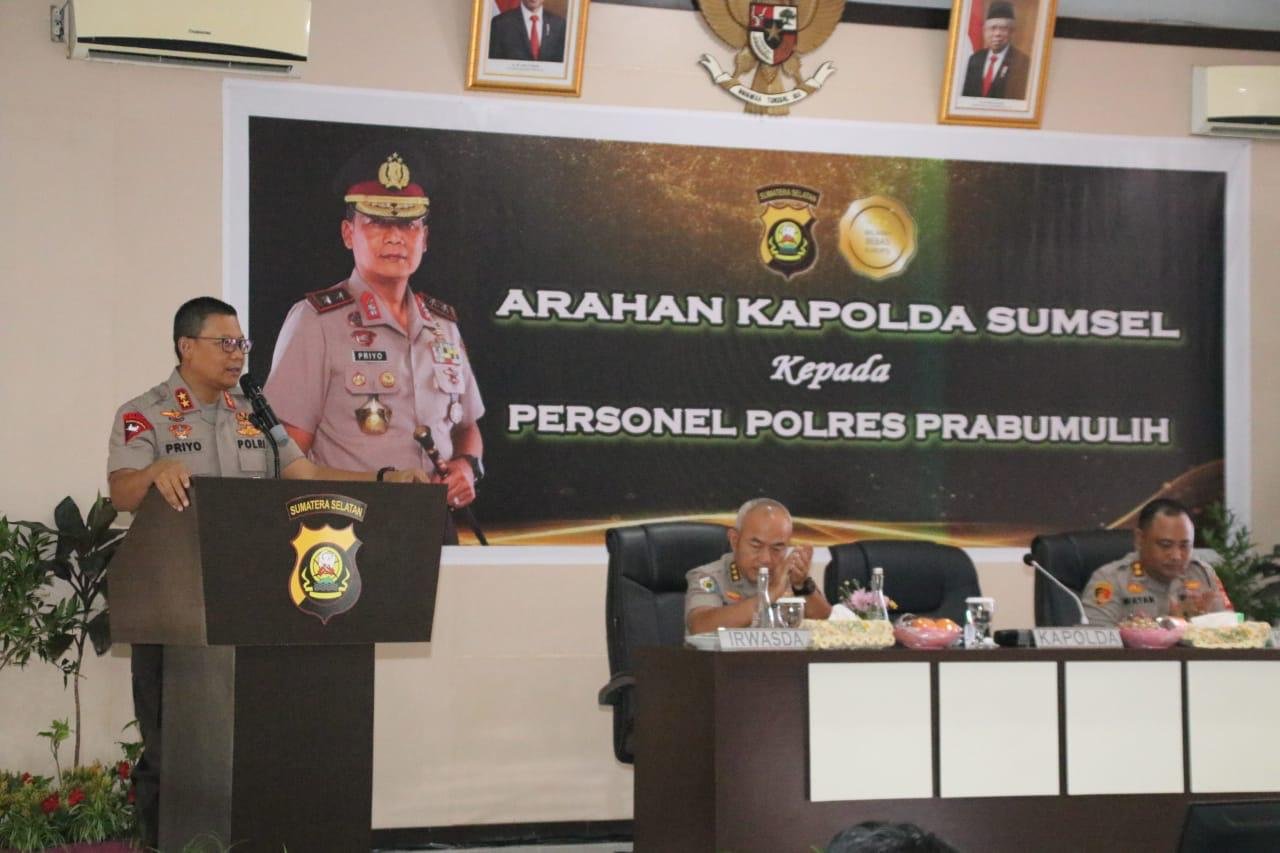 Dalam sambutanya Kapolda mengingatkan kepada anggota Polres Prabumulih untuk selalu meningkatkan kewaspadaan dan kedisiplinan.