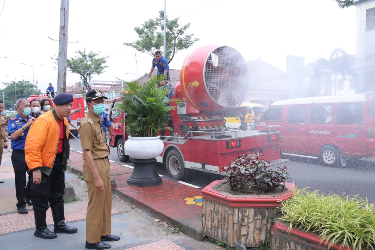 Walikota Palembang H Harnojoyo mengapresiasi, cepat tanggap petugas PBK untuk melakukan penyemprotan sekala besar ini dijalan jalan utama.