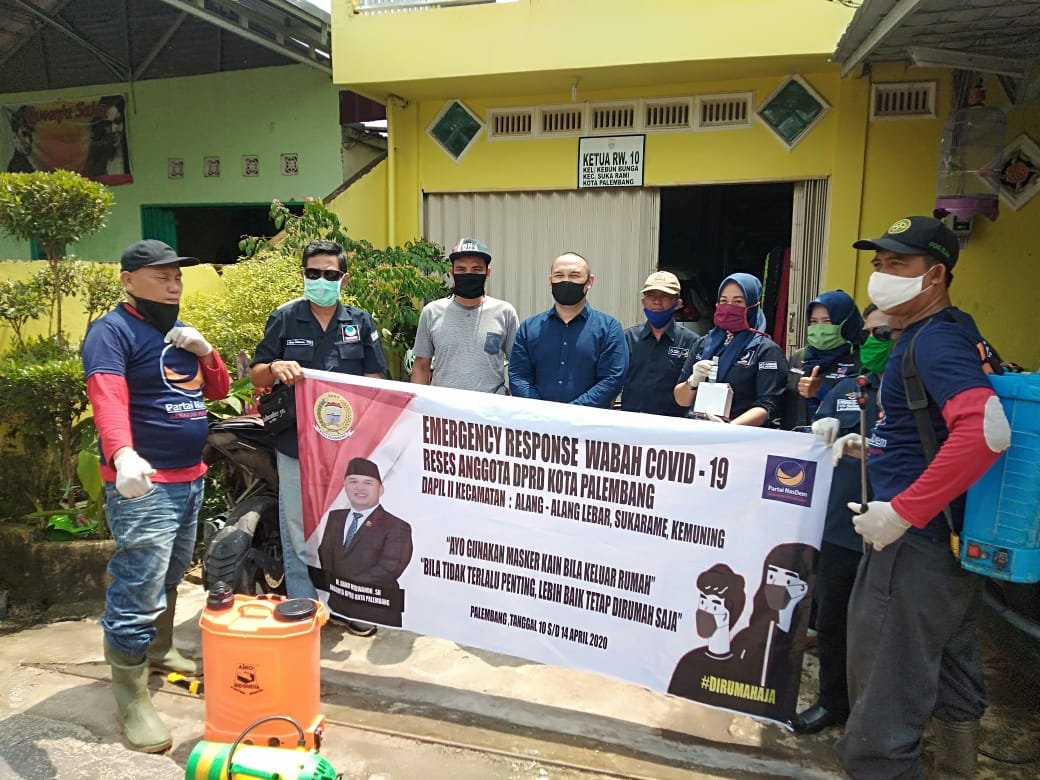 “Wabah covid 19 ini sangat berbahaya, kita sesama umat harus saling menginggatkan. Saya anggota DPRD kota Palembang dari Partai Nasdem. melakukan sosialisasi langsung, sekaligus penyemprotan disinfektan ke rumah warga, hand sanitizier, nasi kotak. Mudah- mudahan ini bermnfaat bagi masyarakat Palembang,” ujarnya.