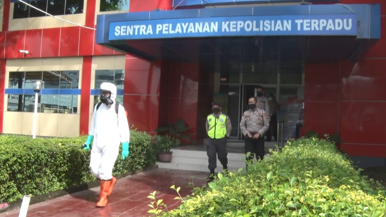 Tim kita hari ini melakukan penyemprotan disekitar Gedung Utama diantaranya di ruang kerja Kapolda dan Wakapolda, Posko Gajah, Penjagaan Mako Polda dan Gedung Sentra Pelayanan Kepolisian Terpadu (SPKT) Polda Sumsel, ini kita lakukan sebagai upaya mencegah penyebaran virus corona.