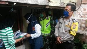 Camat Alang-Alang Lebar Sariansyah Ismail, SSTP, Msi. Serta Kapolsek Sukarame Kompol Irwanto yang diwakili iptu Dirjo dibantu anggota Babinkamtibmas dan anggota Babinsa mendampingi Sri Sudarini membagikan beras kepada warga serta tidak lupa juga sambil memberikan edukasi singkat agar warga tetap menjaga kesehatan dan menggunakan masker apabila keluar rumah.