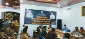 Popo Ali Martopo B.Com bersama Sholihin Abuasir SP pimpin rapat bersama tim gugus tugas Covid-19 di Sekretariat Gugus tugas Selasa 28 April 2020 dihadiri seluruh stakeholder, kejaksaan Oku Selatan, kepolisian polres Oku Selatan dirut PDAM dan Pihak Bulog