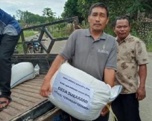 Bentuk rasa peduli pun diterima langsung oleh ibu kepala desa Maymunah dan mengucapkan “terimakasih atas kepedulian kepala Desa Sukarami yang telah meringan kan beban warga desa saya,” ucap Maymunah.(tisna)