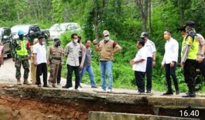 Muaradua, lamanqu.com-Bupati OKU Selatan Popo Ali M.,B.Com. tinjau langsung jalan longsor yang disebabkan derasnya arus Sungai Way Kibul di Desa Tanjung Jaya. Jalan longsor ini merupakan akses jalan yang menghubungkan Desa Tanjung Jaya dan Desa Danau Jaya, dan saat ini kondisi jalan hampir separuh longsor ke sungai, Rabu, (13/05/2020).