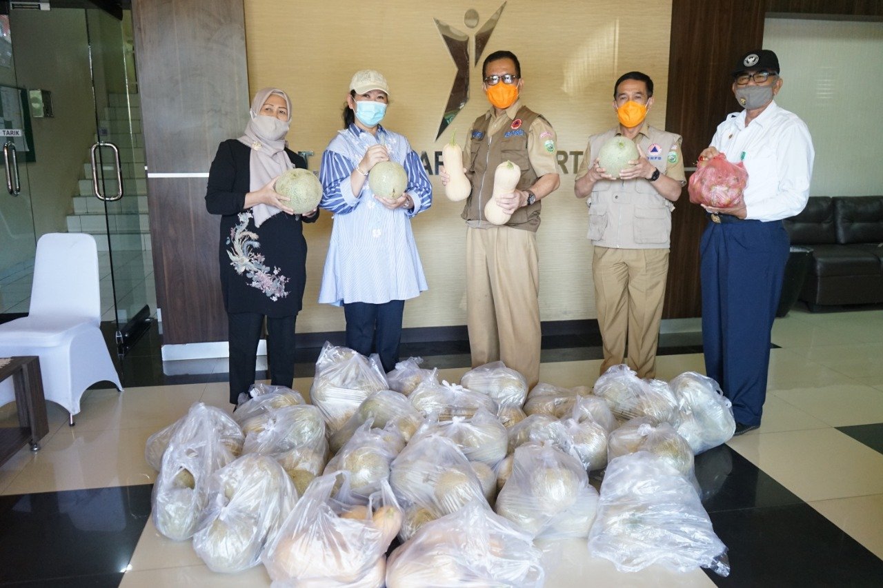 Penyerahan hasil panen buah segar dikebun agro teknologi PKK Jakabaring dibawah pengelolaan TP PKK Sumsel tersebut diterima langsung oleh Sekretaris Gugus Tugas Rumah Sehat Covid -19 JSC Aufa Syahrizal dan Asisten 1 Pemerintah Sumsel Ahmad Najib.