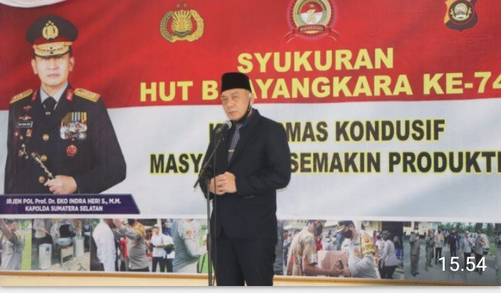“Dengan Semangat Hari Bhayangkara, Polri Berkomitmen untuk menjaga situasi Kamtibmas tetap kondusif agar masyarakat semakin produktif dalam tatanan kehidupan baru ditengah pandemi covid-19. Kepada seluruh insan Bhayangkara dimanapun berada, teruslah semangat dalam memberikan pelayanan terbaik bagi Masyarakat, Bangsa dan Negara.