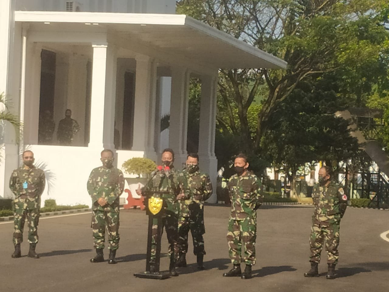 Bandung, lamanqu.com – Kepala Staf TNI Angkatan Darat (KSAD) Jenderal TNI Andika Perkasa, S.E., M.A., M.Sc., M.Phil., Ph.D. menggelar Konferensi Pers dengan mengundang sejumlah insan Media, baik cetak, maupun elektronik, terkait klaster baru COVID-19 yang terjadi di Pusdikpom dan Secapa Bandung, digelar di Jl. Aceh No.69, Merdeka, Kec. Sumur Bandung, Kota Bandung, Jawa Barat Sabtu (11/7).