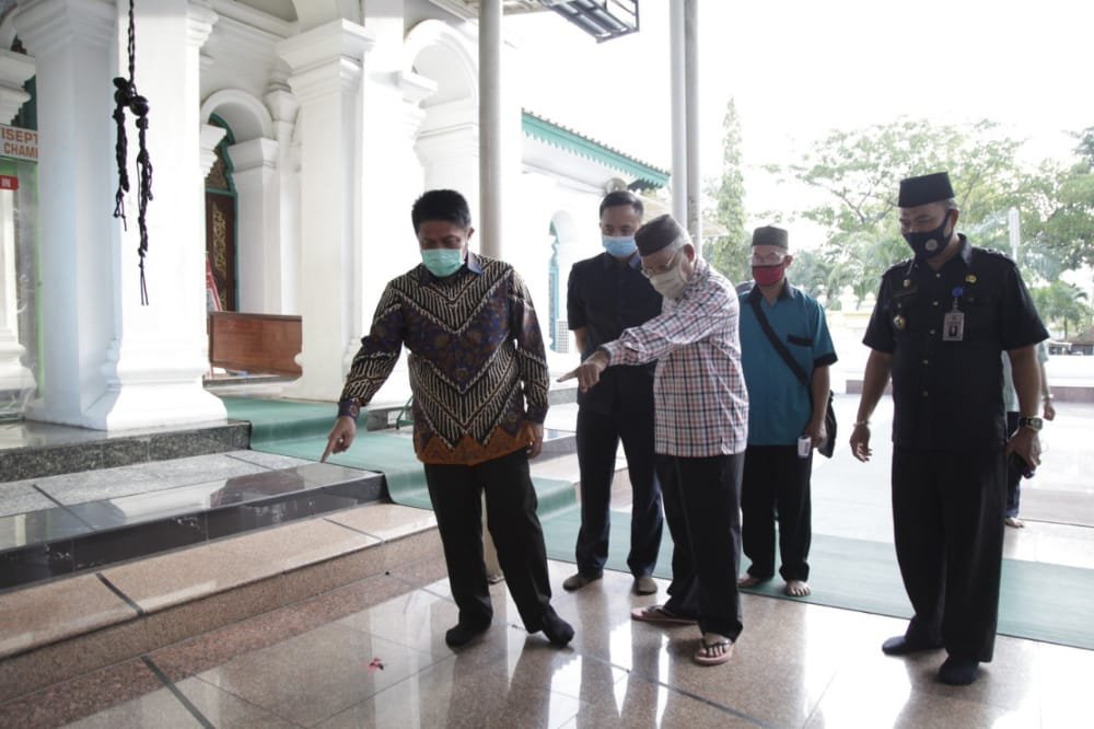 Palembang, lamanqu.com – Sehari menjelang hari raya Idul Adha 1441 Hijriyah yang jatuh pada hari Jumat, 31 Juli 2020, pada Kamis (30/07) sore Gubernur Sumsel Herman Deru menyempatkan diri untuk meninjau tertib pelaksanaan sholat Idul Adha di Masjid Agung Sultan Mahmud Badaruddin I Jayo Wikramo atau biasa disebut Masjid Agung Palembang.