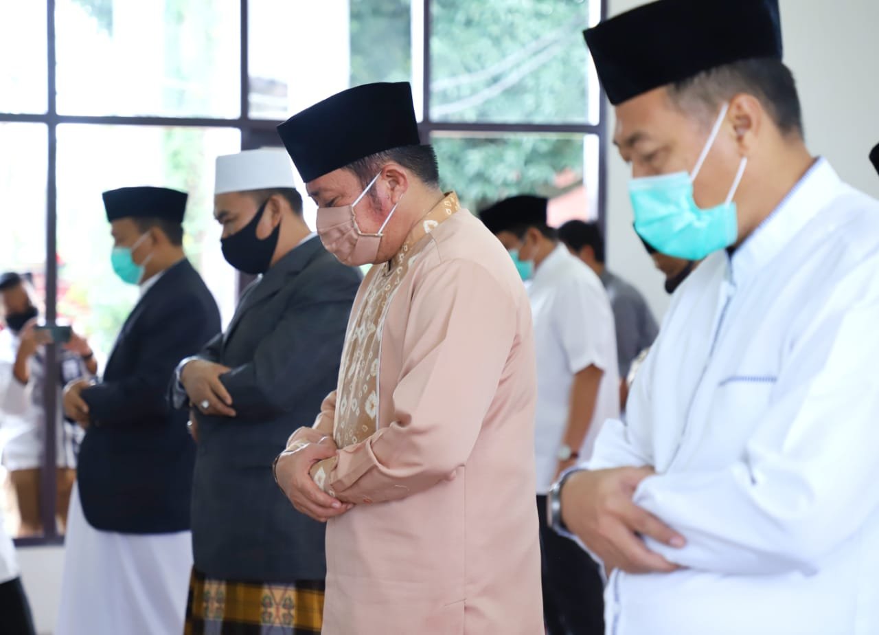 Palembang, lamanqu.com – Gubernur Sumsel H Herman Deru melaksanakan sholat Idul Adha 1441 H di mushola rumah dinas Griya Agung, Palembang, Jum’at (31/7).