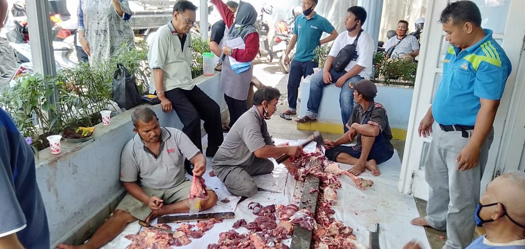 Pemotongan kedua ekor sapi ini dilakukan dari pagi hari yang dihadiri oleh Ketua PWI Sumsel H.