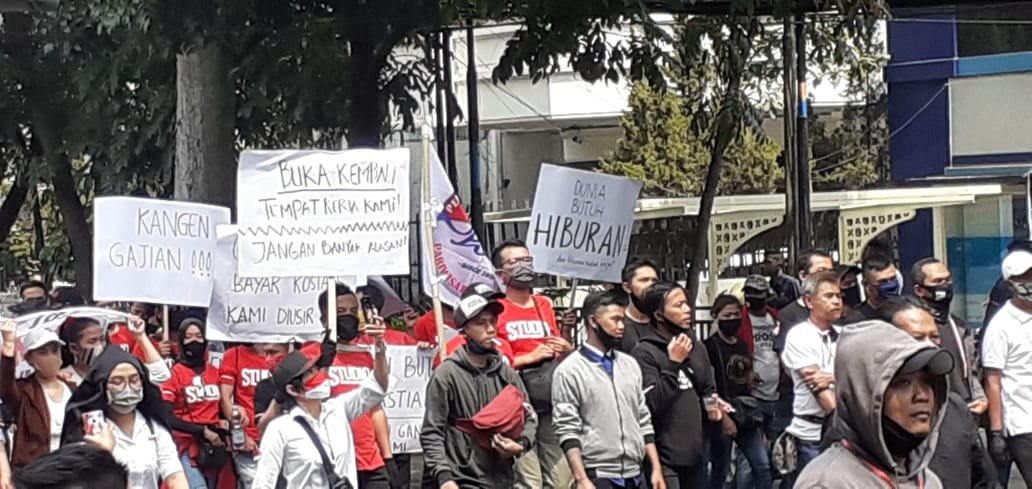 Sementara anggota DPRD Jabar Rafael Situmorang yang datang menemui para pengunjuk rasa mengatakan ” kami telah mendengar aspirasi sahabat – sahabatku yang bekerja di sektor hiburan malam yang memang terdampak Covid-19, kondisinya memang tidak menyenangkan semua pihak.