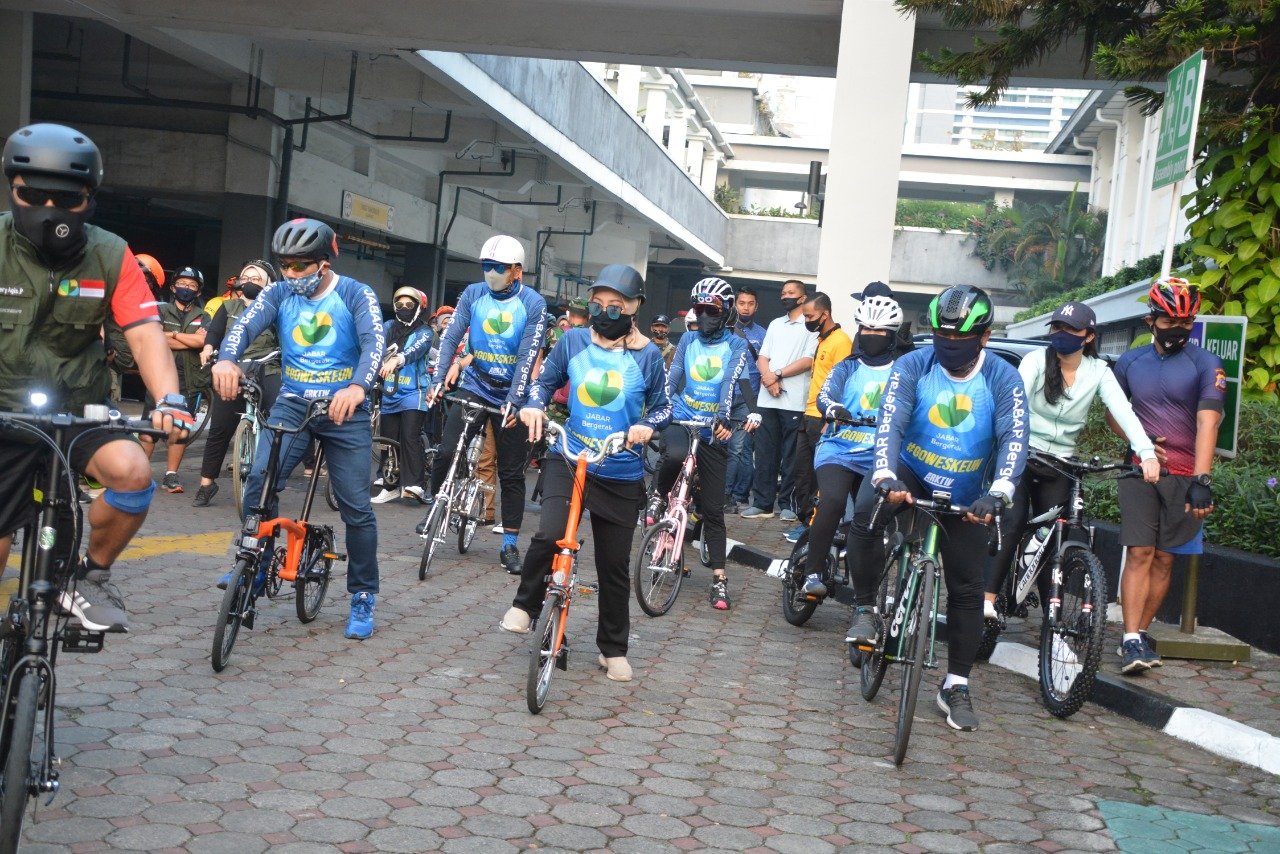 Selain Pangdam III/Siliwangi, Gubernur Jabar dan Kapolda Jabar, turut juga para Asisten Kasdam III/Siliwangi dan pejabat utama Polda Jabar serta komunitas gowes Kota Bandung yang diikuti lebih kurang 100 peserta, dengan mengambil start dan finish di Hotel Grand Preanger, Minggu (9/8/2020).