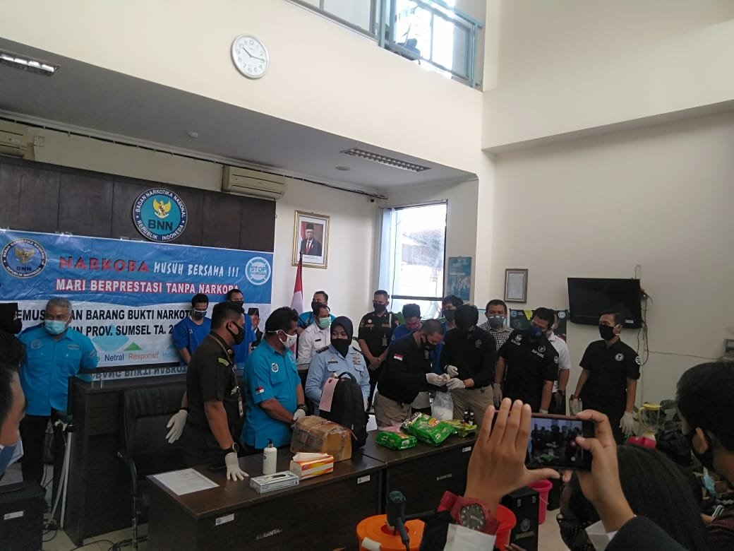 “Pemusnahan barang bukti bukti adalah sebagai tindak lanjut dari penanganan perkara yang diungkap oleh BNNP Sumsel yakni hasil penangkapan BNNP Sumsel di Parkiran Rumah Makan Musi Indah Jalan Palembang-Jambi KM 75 Desa Bukit Kampung Baru Kec Betung Kabupaten Muba tanggal 16 Juli 2020,” bebernya.