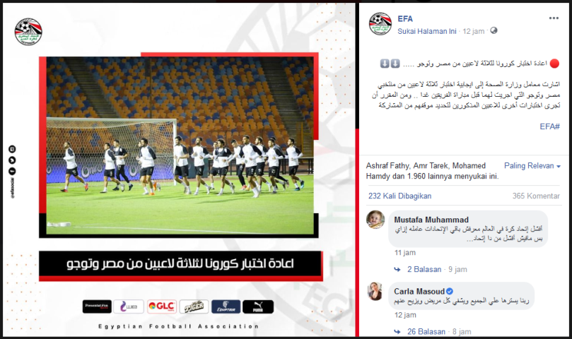 Setelah dilakaukan pemeriksaan ternyata salah satu pemain yang positif terinfeksi virus corona COVID-19 itu adalah Mohamed Salah. Hal tersebut dikonfirmasikan melalui cuitan akun Twitter asosiasi sepak bola Mesir.