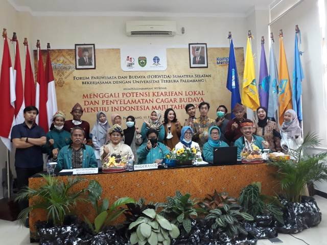 Palembang, lamanqu.com – Forum Pariwisata dan Budaya (Forwida) Provinsi Sumatera Selatan (Sumsel) bekerjasama dengan Universitas Terbuka (UT) Palembang menggelar webinar: Menggali Potensi Kearipan Lokal dan Penyelamatan Cagar Budaya Menuju Indonesia Maju Tahun 2045, Kamis (11/2/2021). Secara offline acara dilaksanakan di kampus UT Palembang.