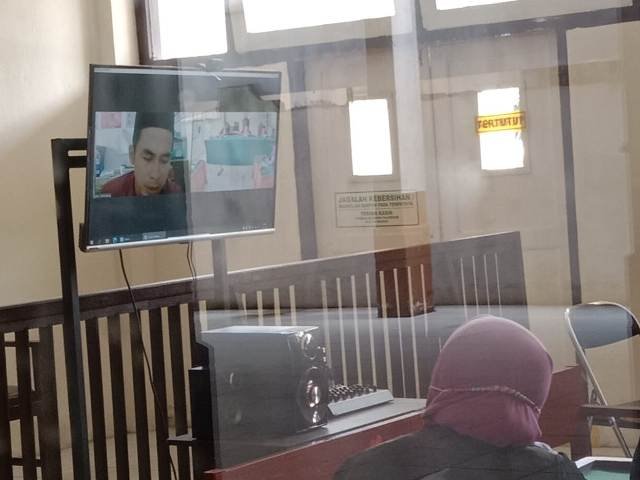 Majelis hakim Tindak Pidana Korupsi (Tipikor) pada Pengadilan Negeri Palembang yang diketuai Elma SH dkk, menggelar sidang dengab agenda pembacaan tuntutan Jaksa Penuntutu Umum (JPU) yang dibacakan oleh Yophi Misdayani SH dkk dan terdakwa dihadirkan secara telekoferensi.