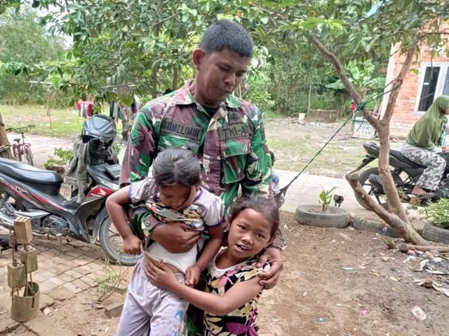 Anak-anak yang ada di kampung Sungai Jawi ini, sudah mulai dekat dengan personil Satgas TMMD Kodim Palembang.