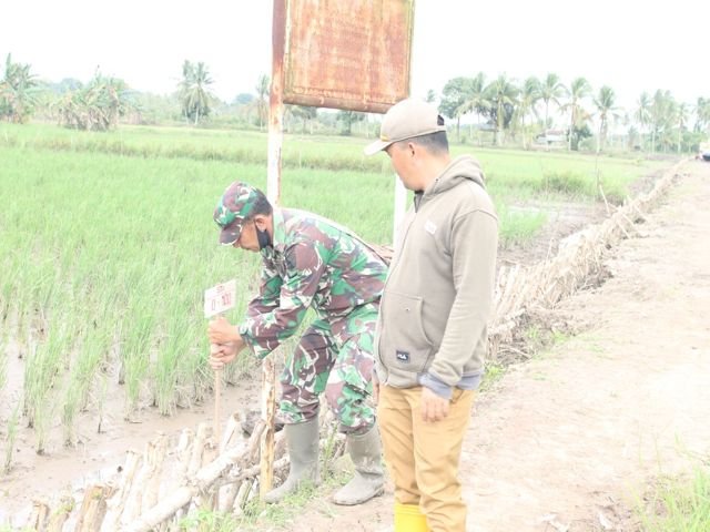 Nampak anggota Satgas memasang patok pembatas jalan telah dipasang. Patok disisi kanan dan kiri jalan tersebut dipasang anggota TNI bersama warga sekitar.