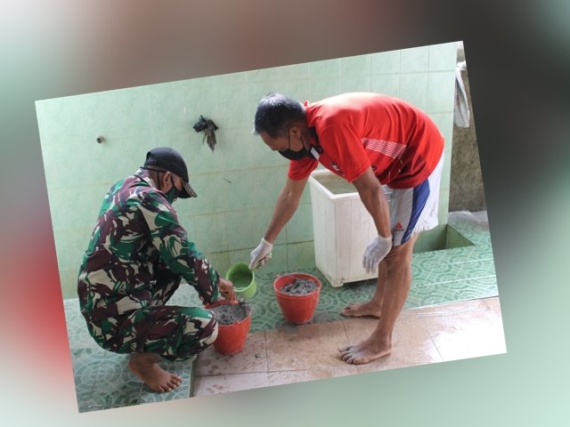 ” Hari ke enam TMMD pengerjaan pembangunan dan rehab masjid Nurul Iman terus kita lakukan. Salah satunya yakni pemasangan keramik di kamar mandi dan tempat wudhu,” kata Dansatgas TMMD Kodim 0418 Palembang, Kolonel Inf Heny Setyono.