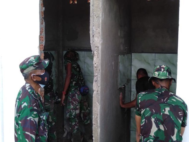 Palembang, lamanqu.com – Pembuatan MCK yang dilakukan personil Satgas TMMD ke 110 Kodim 0418 Palembang terus digenjot, Selasa (09/03/2021). MCK atau Mandi Cuci Kakus untuk warga sekitar menjadi salah satu sasaran fisik pembangunan di TMMD Ke 110 Kodim 0418 Palembang tahun anggaran 2021.