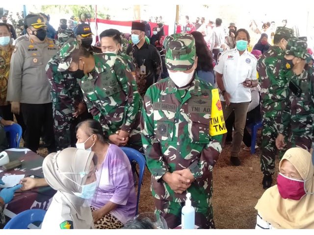 Palembang, lamanqu.com – Ketua tim wasev Mabes TNI Brigjen TNI Edy Susanto didampingi Danrem Brigjen TNI Jauhari Agus Suraji dan Dandim Palembang Kolonel Inf Heny Setyono ketika mengecek pelaksanaan pengobatan gratis di lokasi TMMD.