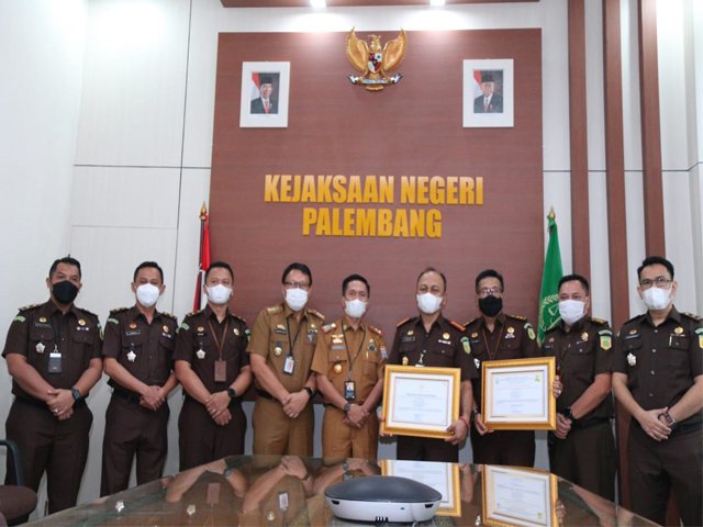 Palembang, lamanqu.com – Sekertaris Daerah (Sekda) Kota Palembang, Drs. Ratu Dewa, menyerahkan dua piagam penghargaan kepada Jaksa Pengacara Negara Kejaksaan Negeri (Kejari) Palembang, Senin (22/3/2021) diruang Kejari Palembang.