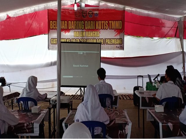 Palembang, lamanqu.com – Semenjak pandemi Covid-19 semua pelajar harus belajar secara daring. Hal inilah yang menjadi salah satu kegiatan non fisik TMMD 110 Kodim 0418 Palembang, yang mengadakan belajar daring di Pos Kotis TMMD,Selasa (23/3/2021).