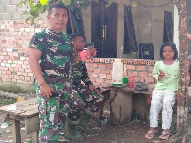 Palembang, lamanqu.com – Seorang bocah perempuan, tiba-tiba menghampiri personil satgas TMMD yang sedang beristirahat di bawah pohon, Senin (29/03/2021).