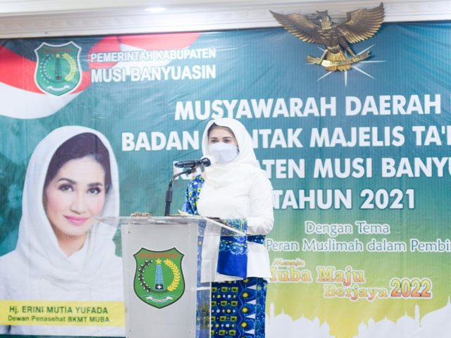 Pesan ini disampaikan Thia Yufada saat membuka Musyawarah Daerah ke-5 (Musda) BMKT Kabupaten Musi Banyuasin Tahun 2021 dengan Tema “Mari Kita Tingkatkan Peran Muslimah dalam Pembinaan Akhlak Umat” di Auditorium Pemkab Muba, Rabu (21/04/2021).