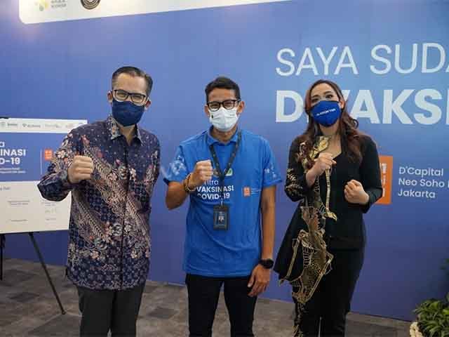 “Vaksinasi Covid-19 para pelaku pariwisata dan ekonomi kreatif terus diprioritaskan, digencarkan dan diharapkan agar segera menyeluruh kepada 34 juta pelaku sektor pariwisata. Dalam rangka menyukseskan program vaksin pelaku parekraf, pemerintah tidak berjalan sendirian namun dengan senang hati menggandeng banyak perusahaan seperti ALODOKTER, Neo Soho, Bundamedik, dan Danone yang menyediakan semua sarana dan prasarana vaksinasi Covid-19 dari tanggal 8 hingga 11 Juni 2021 untuk vaksin dosis pertama. Semua usaha percepatan vaksinasi seperti hari ini penting dan memiliki dampak besar pada peningkatan kepercayaan pada dunia pariwisata baik dari sisi wisatawan maupun pelaku usaha. Sektor ekonomi kreatif diharapkan segera stabil.” Kata Sandiaga Uno, Menteri Pariwisata dan Ekonomi Kreatif RI, Selasa (8/6/2021).