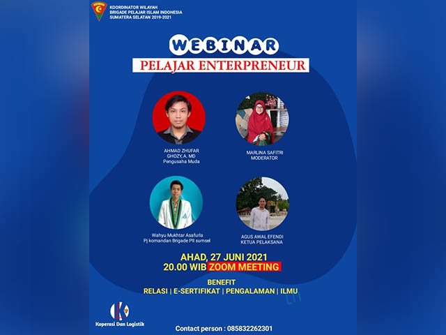 Palembang, lamanqu.com – Koordinator Wilayah ( Korwil ) Brigade Pelajar Islam Indonesia ( BPII ) Sumatera Selatan ( Sumsel ) akan mengadakan Webinar Nasional Pelajar Enterpreneur pada hari Minggu 27 Juni 2021.