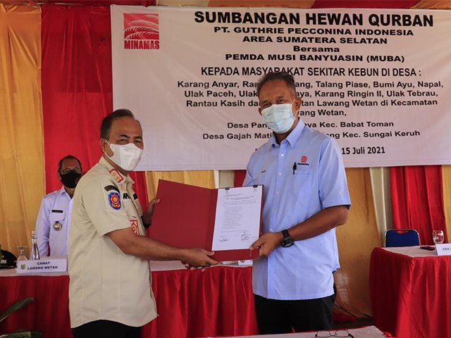 Menjelang Perayaan Hari Raya Idul Adha 1442 H/2021 M ini Pemerintah Kabupaten Musi Banyuasin menerima bantuan hewan kurban dari Minamas Plantation melalui anak usahanya PT.Guthrie Pecconina Indonesia (PT GPI) yang mendonasikan 16 ekor sapi kepada masyarakat di Kecamatan Lawang Wetan, Babat Toman dan Kecamatan Sungai Keruh.