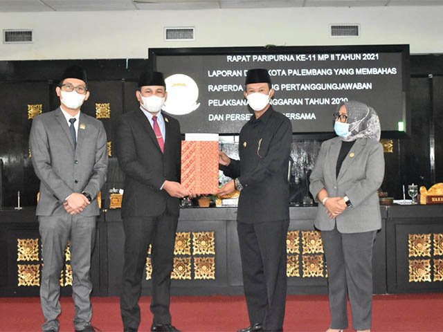 Palembang, lamanqu.com – DPRD Kota Palembang menggelar Rapat Paripurna ke 11 Masa Persidangan II Tahun 2021, dengan agenda Laporan DPRD Kota Palembang yang membahas Raperda tentang pertanggungjawaban pelaksanaan anggaran tahun 2020 dan persetujuan bersama, di ruang rapat Paripurna DPRD Kota Palembang, Jumat (30/7/2021).