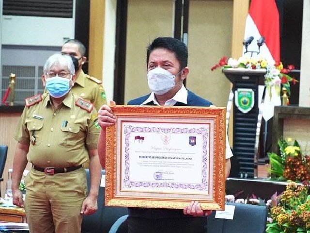 Penghargaan tersebut diserahkan Menteri Dalam Negeri (Mendagri) M. Tito Karnavian secara virtual kepada Gubernur Sumsel H. Herman Deru pada Rakor Pengawasan Penyelenggaraan Pemerintahan Daerah secara Nasional (Rakorwasdanas) sekaligus launching Sinergitas Pengelolaan Bersama Monitoring Centre for Prevention (MCP) pencegahan korupsi oleh KPK RI, di Auditorium Graha Bina Praja Pemprov Sumsel, Selasa (31/8/2021).