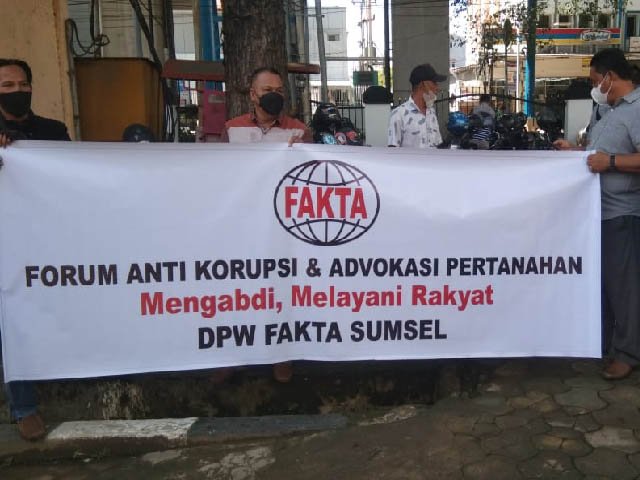 Palembang, lamanqu.com – Puluhan massa yang tergabung dalam Forum Anti Korupsi dan Advokasi Pertanahan (FAKTA) mendatangi Pengadilan Negeri (PN) Palembang, Kamis (16/9/2021).