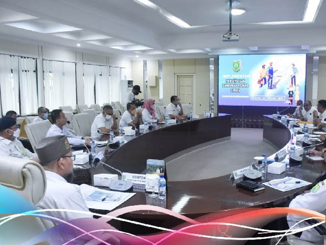 Plt Bupati Muba Beni Hernedi melalui Asisten Bidang Pemerintahan dan Kesejahteraan Rakyat Setda Kabupaten Muba H Yudi Herzandi SH MH, memimpin Rapat Pembahasan terkait Implementasi Kebijakan dalam Penerbitan Persetujuan Bangunan Gedung (PBG). Rapat bertempat di Ruang Serasan Sekate, Rabu (12/1/2022).