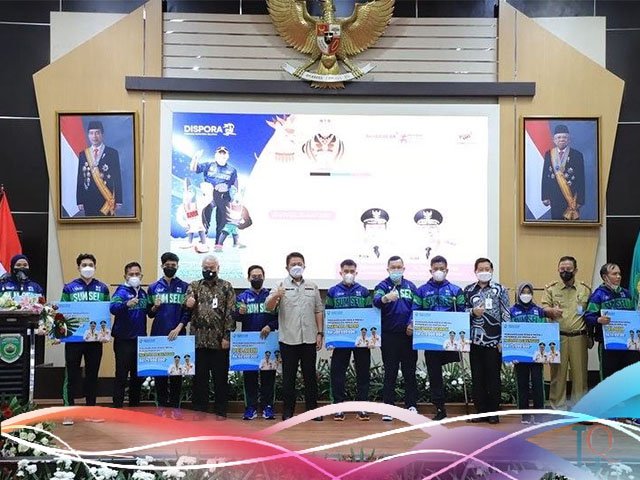 Palembang, lamanqu.com – Gubernur Sumatera Selatan (Sumsel) H. Herman Deru menyerahkan bonus kepada atlet dan pelatih yang telah berprestasi menyumbangkan mendali pada Pekan Olahraga Nasional (PON) XX dan Pekan Paralimpik Nasional (Peparnas) XVI Papua 2021 lalu, penyerahan bonus tersebut dilakukan di Bina Praja Pemprov Sumsel, Selasa (26/4/22).