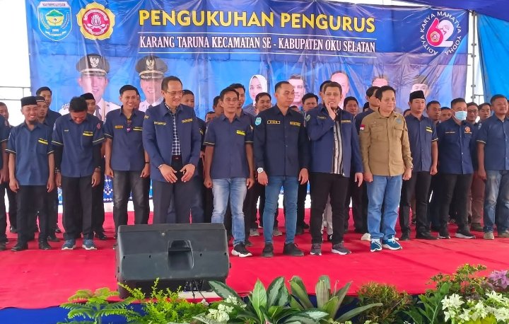 MUARADUA, LamanQu id— Bertempat di Lapangan parkir Danau Ranau Kecamatan Banding Agung Kabupaten OKU Selatan, Dilaksanakan pelantikan pengurus Karang Taruna Kecamatan Se Kabupaten OKU Selatan, Sabtu ( 19/11/22).