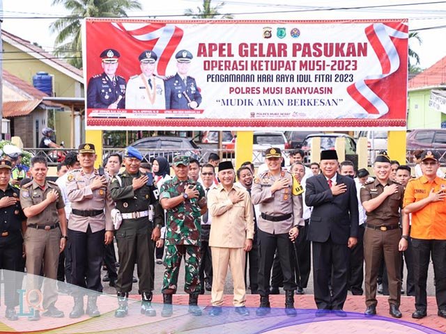 Membacakan amanat Kapolri, Pj Bupati Muba diantaranya menyampaikan, Apel gelar pasukan merupakan bentuk pengecekan akhir kesiapan pelaksanaan Operasi Ketupat 2023. Kegiatan ini juga merupakan wujud nyata sinergisitas Polri dengan stakeholder terkait dalam rangka mengamankan mudik dan perayaan hari raya Idul Fitri 1444 H.