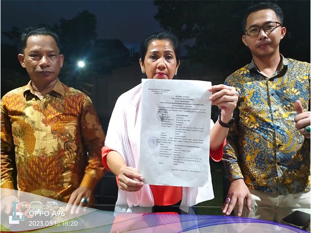 Palembang, lamanqu.com – Enny Indrianny didampingi pengacaranya yaitu Sunaryo, SH.MH dan Muhammad Saddam Saputra, SH mengadakan jumpa pers pada Jumat, 12 Mei 2023.