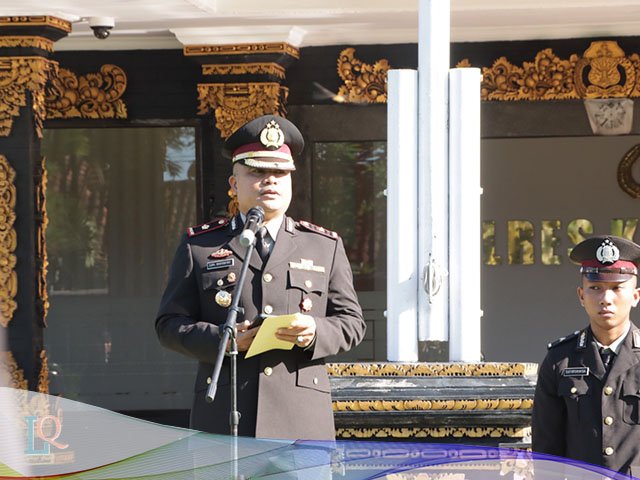 Wakapolres Klungkung Kompol I Komang Sura Maryantika membacakan Amanat Presiden RI Ir Joko Widodo menyampaikan Puji syukur yang setinggi-tingginya kita panjatkan kehadirat Tuhan Yang Maha Esa karena berkat rahmat beliau kita dapat mengikuti kegiatan upacara, dalam rangka memperingati Hari Bela Negara Ke-75.