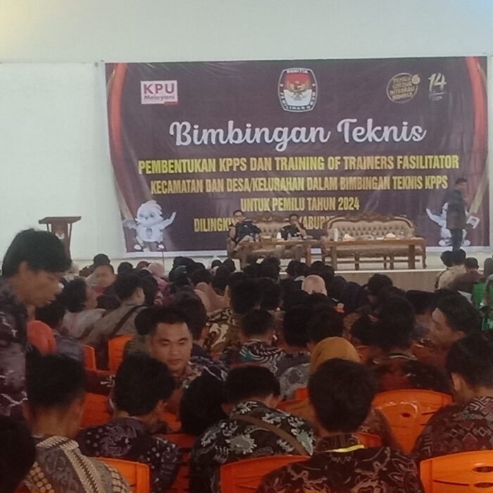 Muaradua, LamanQu id—Bimbingan teknis pembentukan kpps dan training of trainer untuk fasilitator kecamatan dan desa/kelurahan dalam bimbingan teknis kpps untuk tahun 2024 di lingkungan KPU se-OKU Selatan, digelar di gedung Agmarateza muaradua pada hari selasa 23 januari 2024.