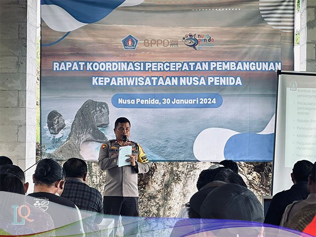 Bali, lamanqu.com – Polsek Nusa Penida, Waka Polres Klungkung Kompol I Komang Sura Maryantika,S.H.,M.H. bersama Kapolsek Nusa Penida Kompol Ida Bagus Putra Sumerta, S.Sos., menghadiri Rapat koordinasi percepatan pembangunan kepariwisataan di Resto Amerta. Senin (30/01/2024).