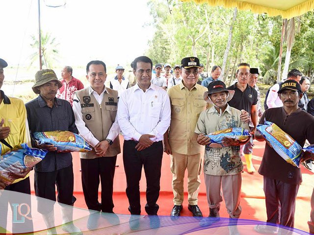 Banyuasin, lamanqu.com – Menteri Pertanian (Mentan) Republik Indonesia (RI) Andi Amran Sulaiman bersama Penjabat (Pj) Gubernur Sumatera Selatan (Sumsel) Agus Fatoni melakukan kunjungan kerja (kunker) dalam rangka Pelaksanaan Kegiatan Upaya Khusus (Upsus) Optimalisasi Lahan Rawa Tahun 2024. Kegiatan ini berlangsung di Desa Sumber Hidup, Kecamatan Muara Telang, Kabupaten Banyuasin, Sumatera Selatan, Jumat (1/3/2024).