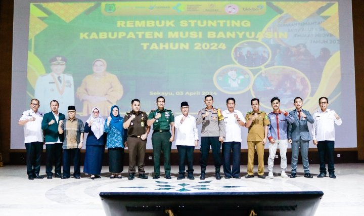 Lanjutnya, “pada kesempatan ini juga kita melaksanakan penandatangan komitmen Rembuk Stunting tingkat Kabupaten Muba ttahun 2024. Tujuannya setiap lintas sektor dan pemangku kepentingan melakukan intervensi secara bersama-sama dalam percepatan penurunan stunting di Kabupaten Muba,”ucapnya.