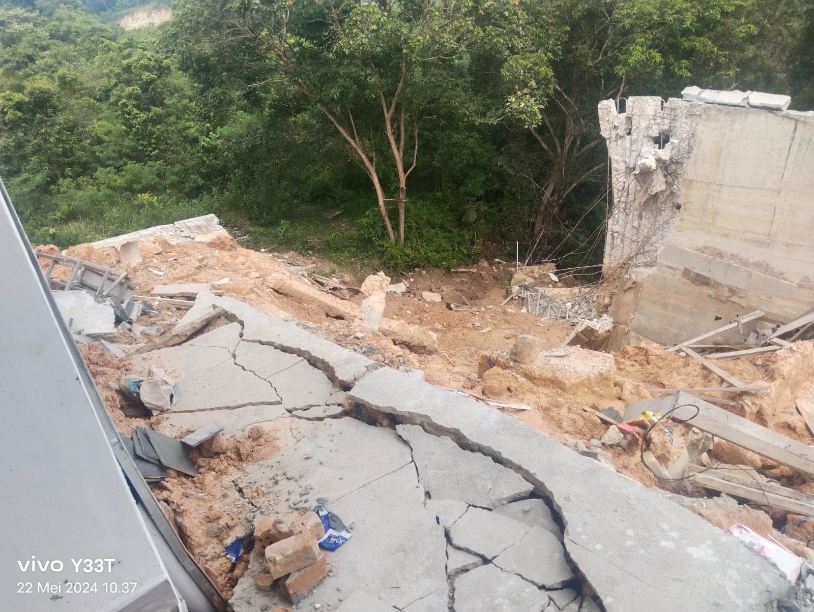 Jadi tanah tersebut sambungnya, masih dalam keadaan labil dan dilanda hujan yang cukup tinggi hingga menimbulkan bangunan tersebut rusak parah.