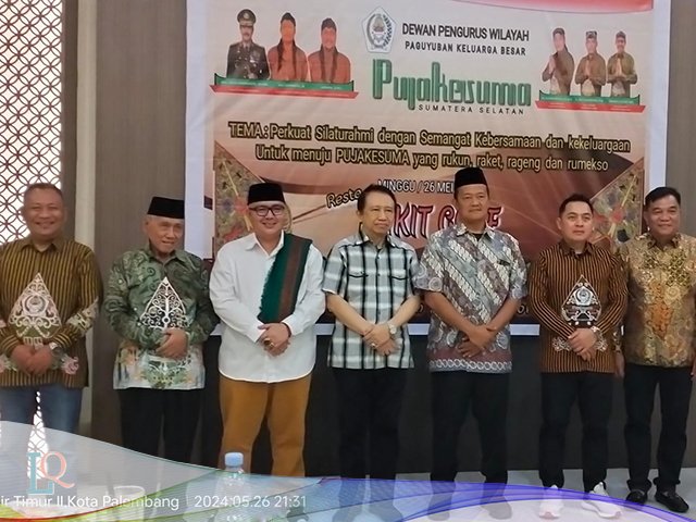 “Alhamdulilah hari ini kita bisa bertemu. Kami pengurus Pujakesuma Sumsel dengan tema Dengan tema Perkuat Silaturahmi Dengan Semangat Kebersamaan dan Kekeluargaan Untuk Menuju Pujakesuma yang rukun, raket, rageng dan rumekso. Inilah harapan kami. Pujakesuma ini wadah saudara saudara kita,” katanya.