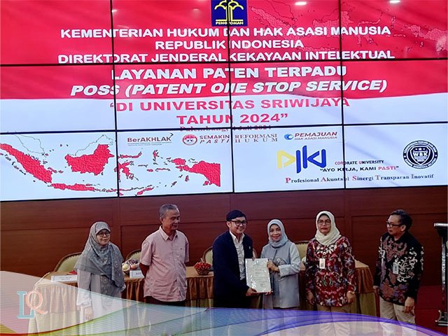 Dalam Kegiatan penyerahan sertifikat Paten tersebut telah diselenggarakan Direktorat Jenderal Kekayaan Intelektual (DJKI) Kemenkumham dan Hari ini dilaksanakan di LB Universitas Sriwijaya Kampus Bukit.